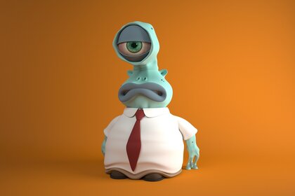 橡皮泥怪物与橙色背景上的一只眼睛