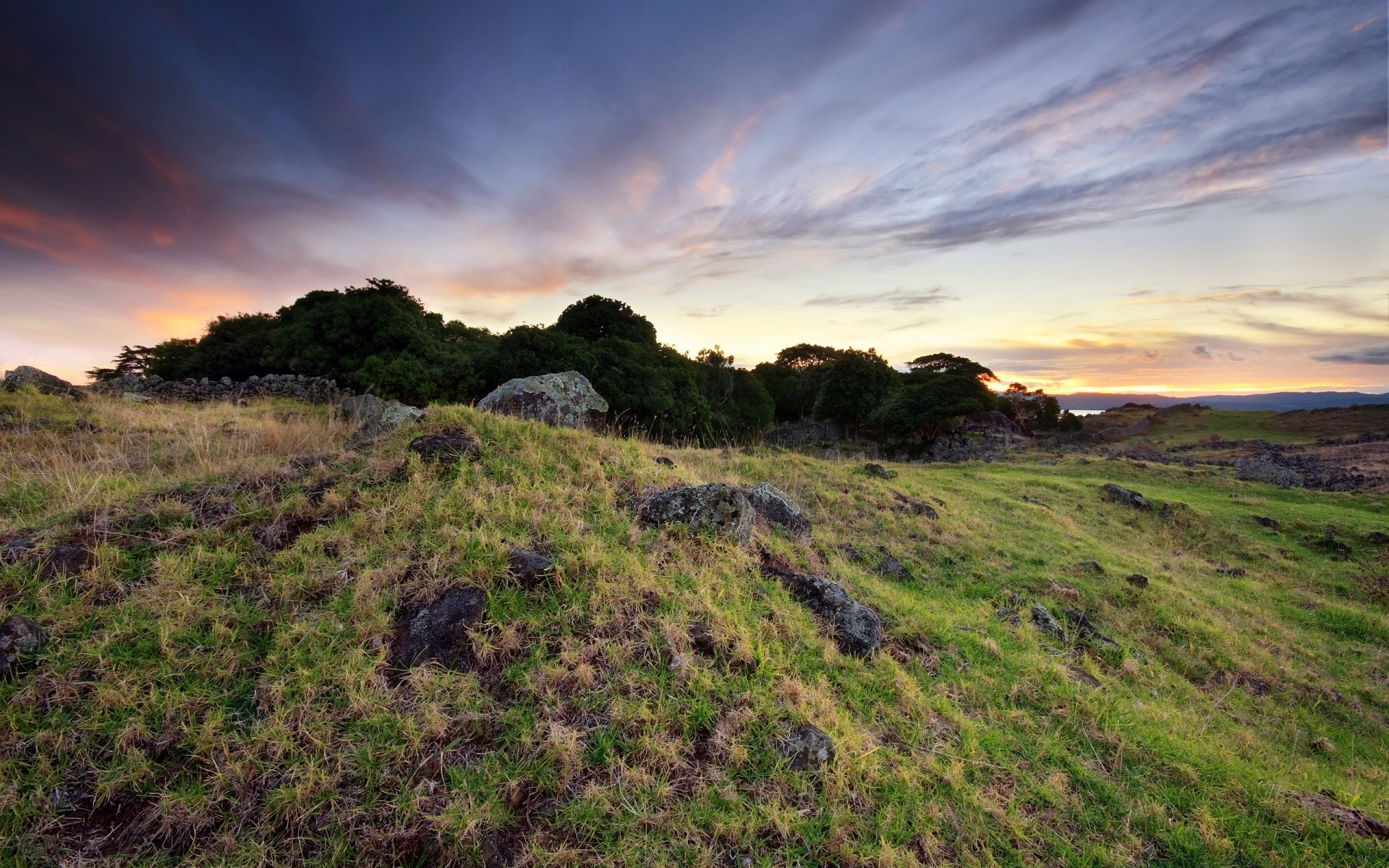 大自然的快照草绿色树木清除天空