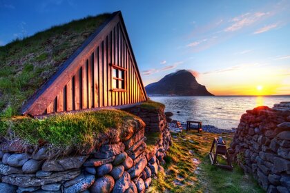 一个美丽的风景在一个站立的灯塔在海中间的距离