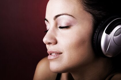 一个女孩与耳机在工作室的肖像