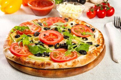 蓝色披肩织物背景上的五朵白玫瑰的花束