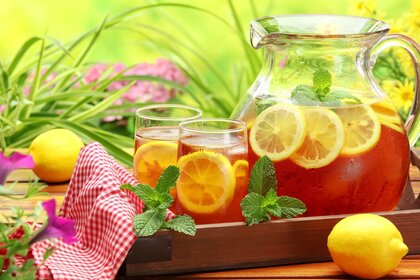 一只狗在一个红色的围巾和连指手套,鲜花野餐