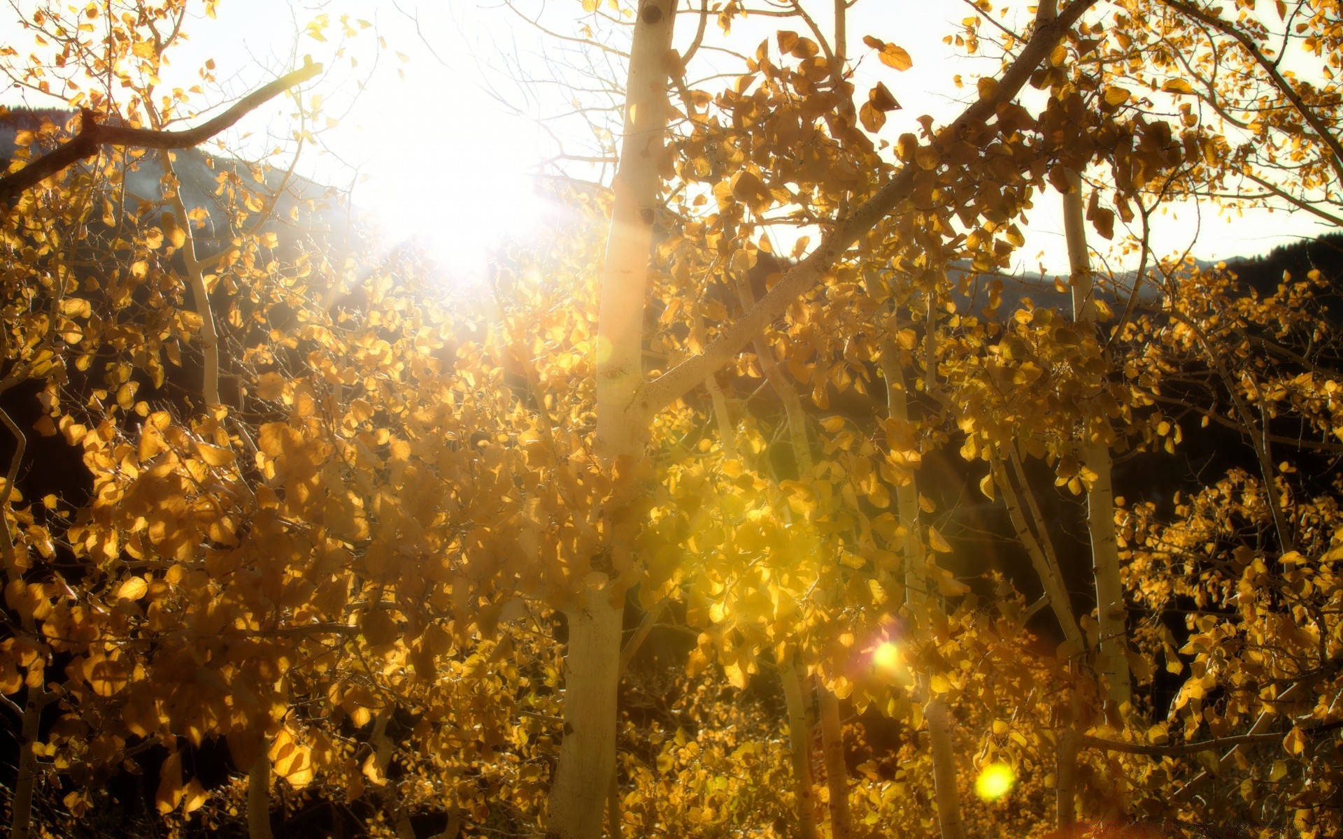阳光透过秋天树叶的棱镜 - 桌面壁纸