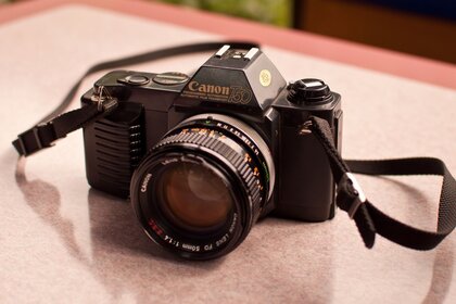 佳能相机在桌子上