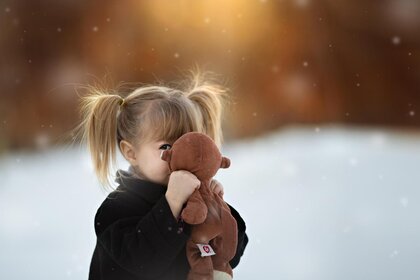 美丽的小女孩拿着一根柔软的针