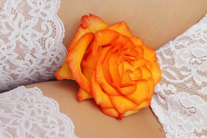 橙色玫瑰和白色内衣