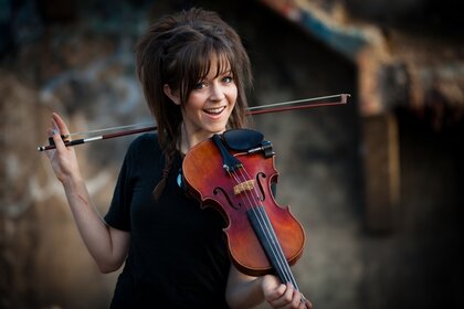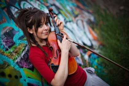 一个红头发的女孩。 拿着小提琴的女孩