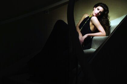 时髦的鞋子。 真皮沙发。 沙发上的那个女孩。 背心里的女孩