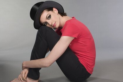 一个穿着时髦衣服的女孩坐在地板上