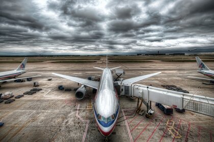 飞机在机场:起飞即将到来