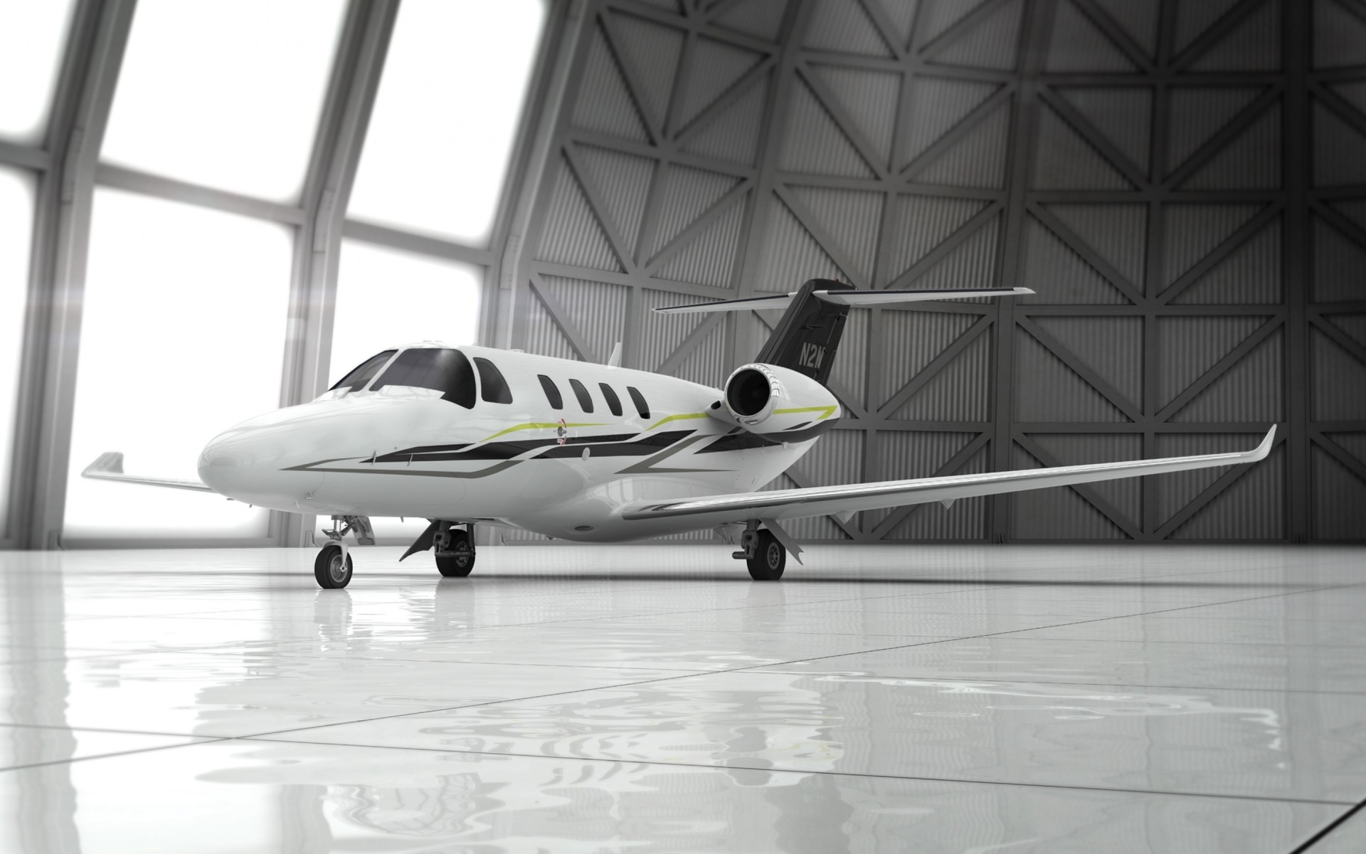 飞机在机库,灰色调 - 桌面壁纸