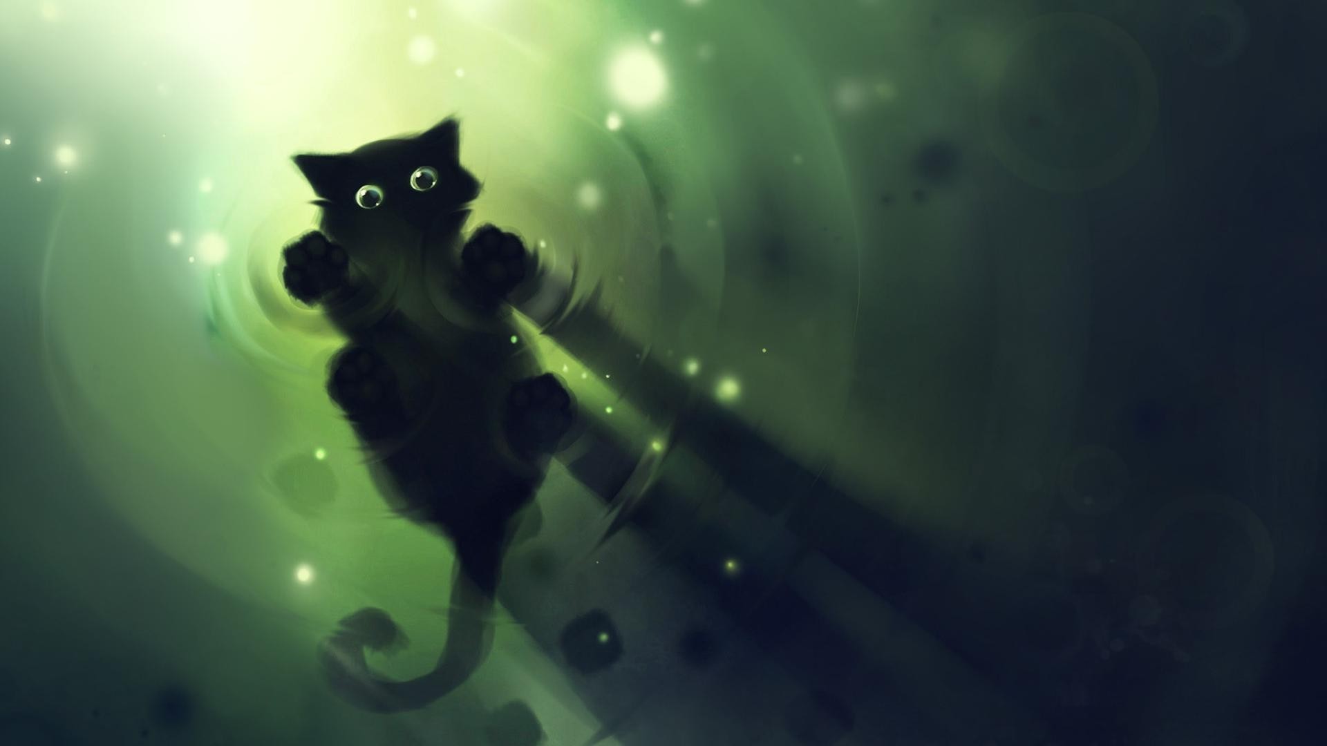 黑色的小猫从水底的剪影 - 桌面壁纸
