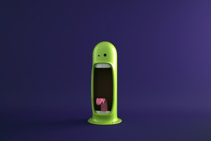 绿色怪物胶囊张开嘴,让舌头可以看到