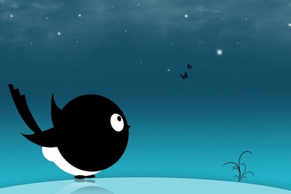 抽象的大头鸟看着两只蝴蝶