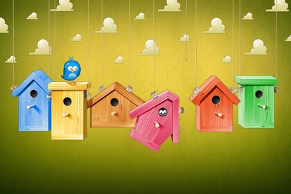 卡通彩色鸟舍挂在字符串