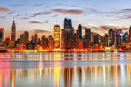 日落时摩天大楼的灯光