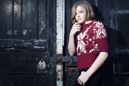 金发碧眼的女孩在一个红色的毛衣