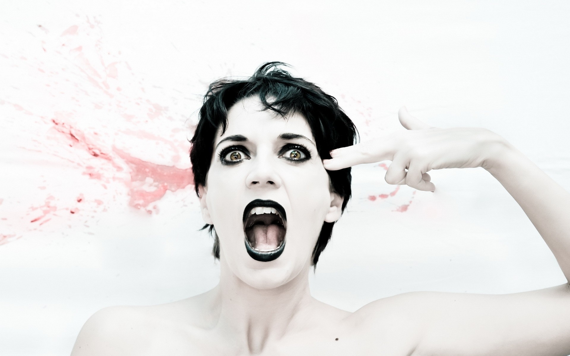 女孩 女人 肖像 年轻 时尚 脸 美丽 成人 魅力 模型 黑发 一个 男人 情况 女人在震惊 震惊的脸