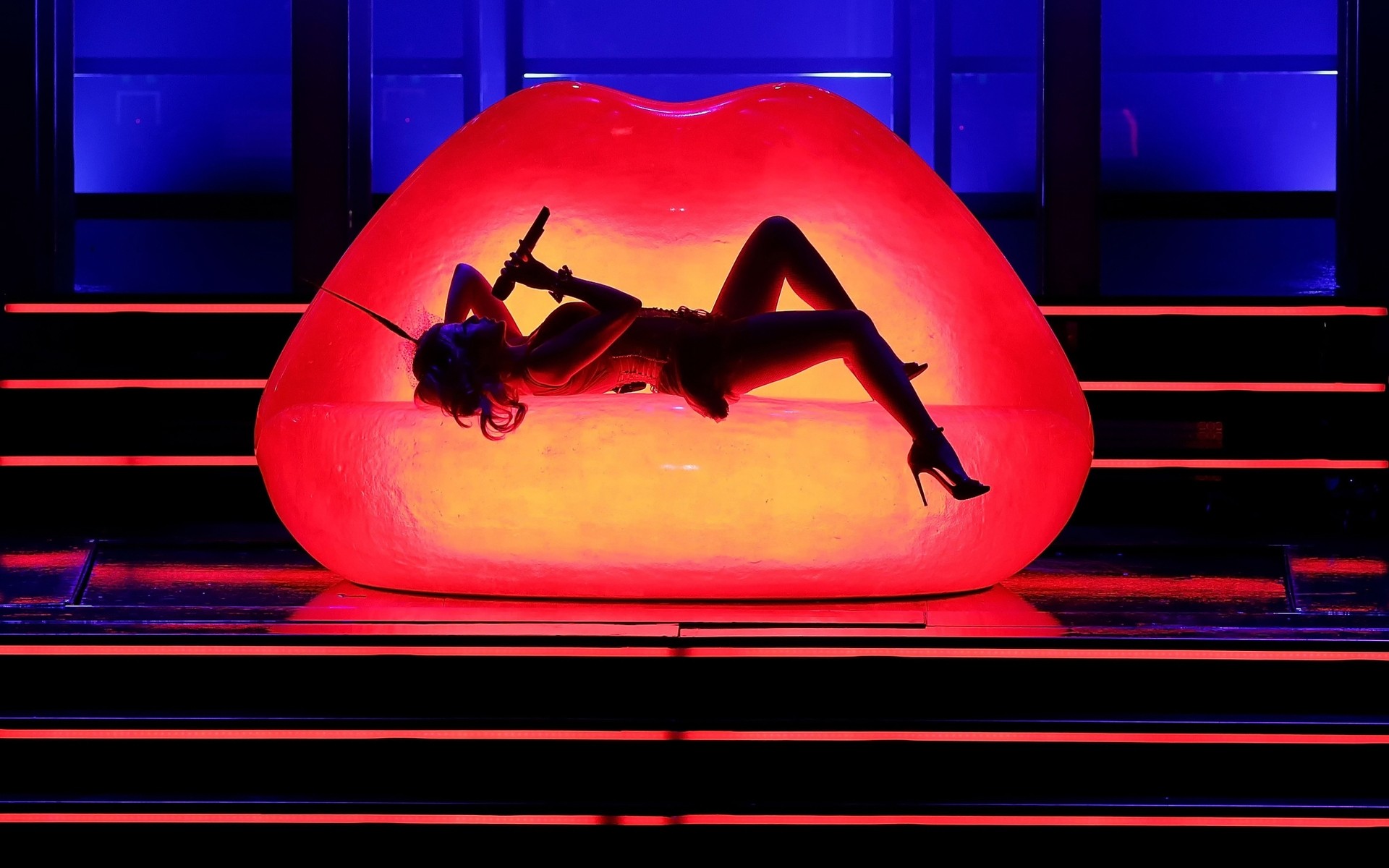 性感的歌手唱她的歌在舞台上 - 手机壁纸