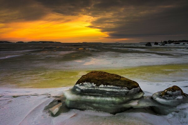 海上的日落。 恶劣天气的方法