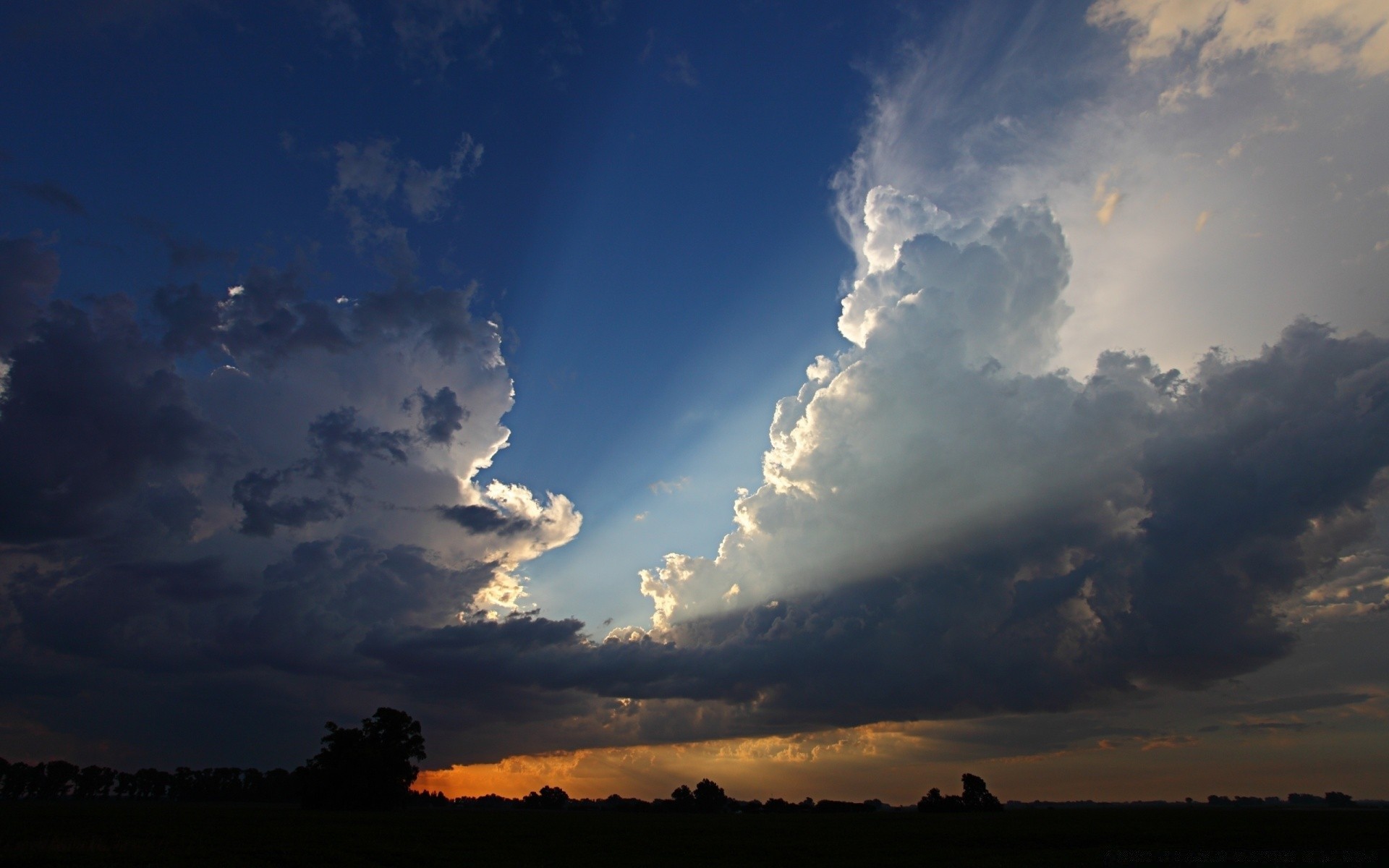 地平线在日落时被太阳照亮 - 桌面壁纸